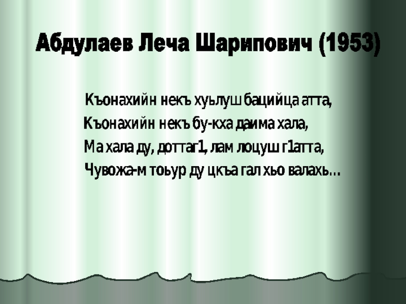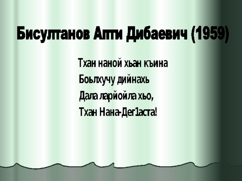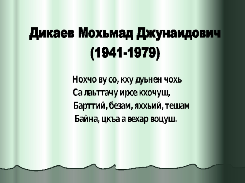 Слайд 1 «…Бекалахь, цхьа мерза - г1айг1ане мукъам! Декалахь лийрдоцу дош!»