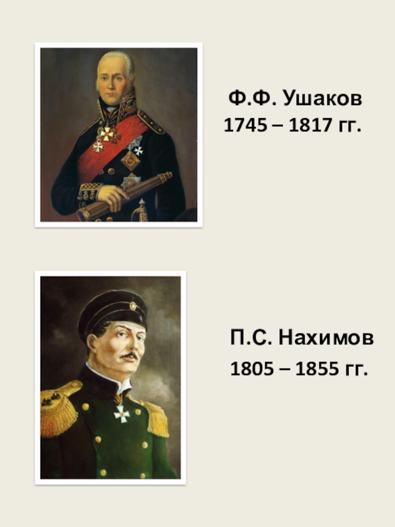Ф.Ф. Ушаков    1745 – 1817 гг.  П.С. Нахимов  1805
