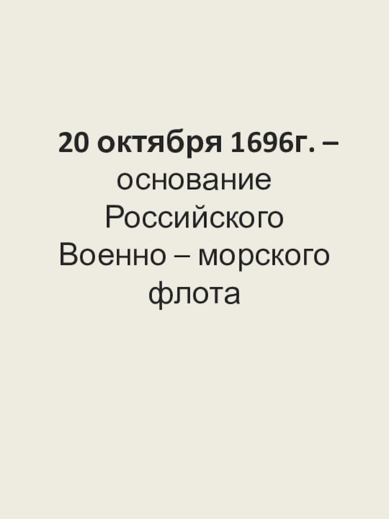 20 октября 1696г. –  основание Российского  Военно – морского флота
