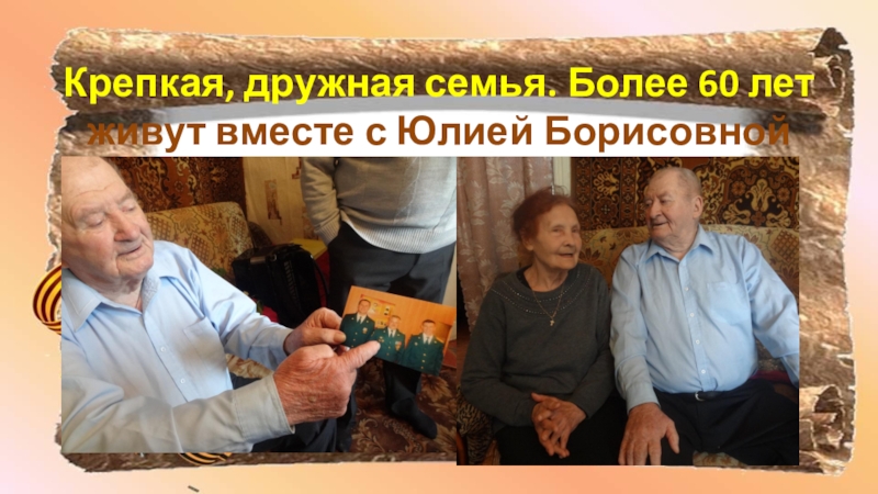 Слайд 12Крепкая, дружная семья. Более 60 лет живут вместе с Юлией Борисовной