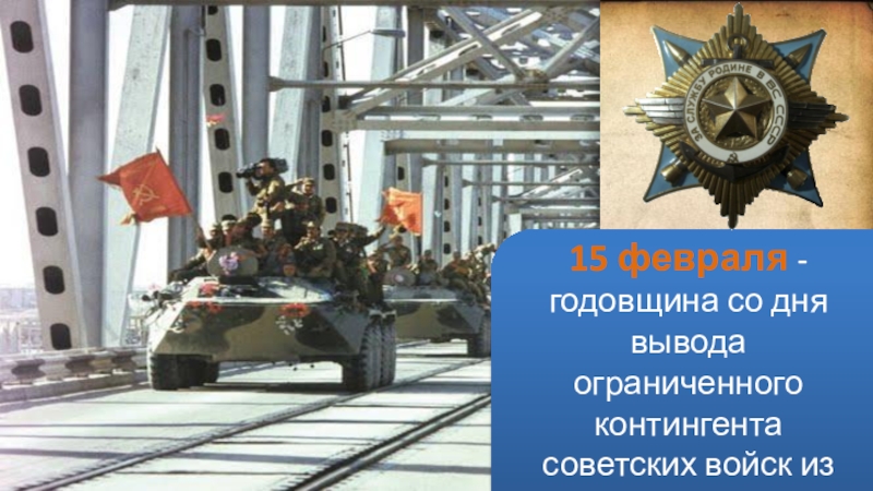 Слайд 415 февраля - годовщина со дня вывода ограниченного контингента советских войск