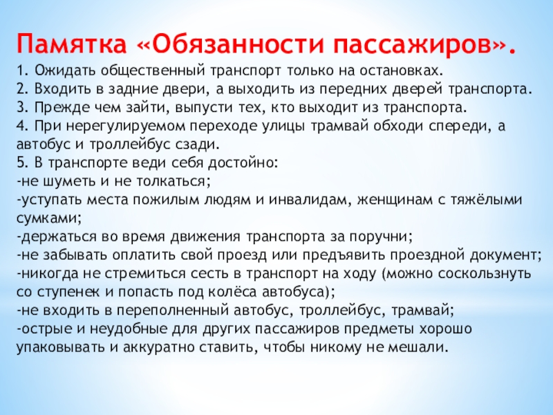 -не забывать оплатить свой проезд или предъявить проездной документ;