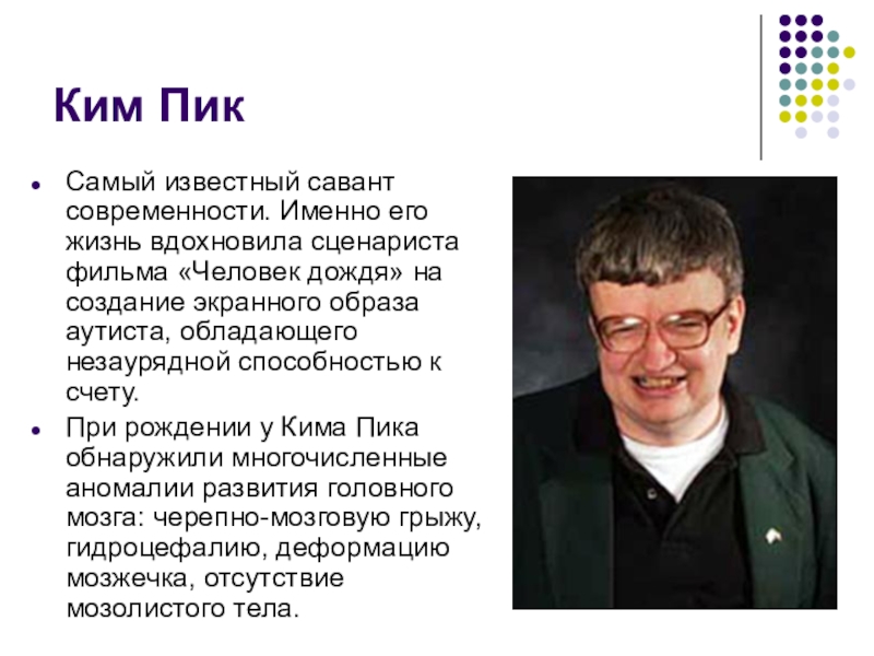 Самый известный савант современности. Именно его жизнь вдохновила сценариста фильма