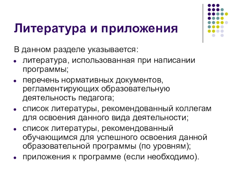 список литературы, рекомендованный коллегам для освоения данного вида деятельности;