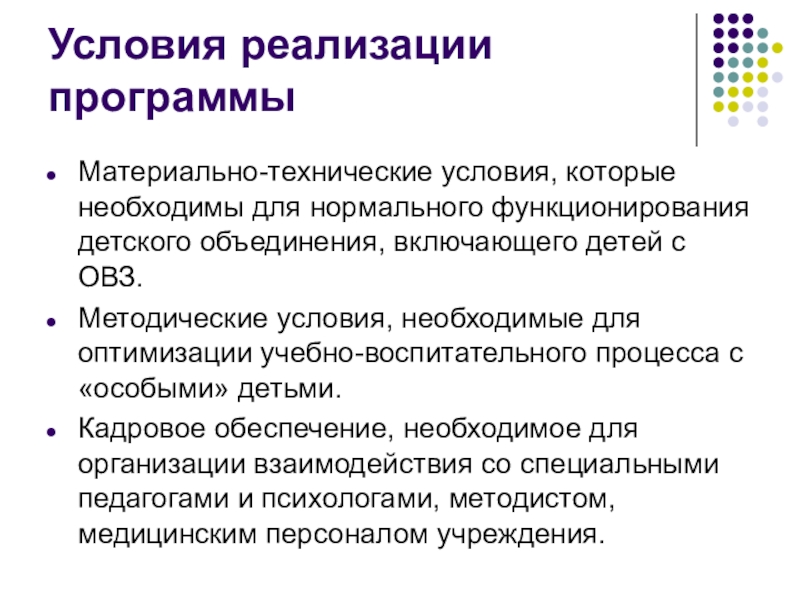 Методические условия, необходимые для оптимизации учебно-воспитательного процесса с «особыми» детьми.