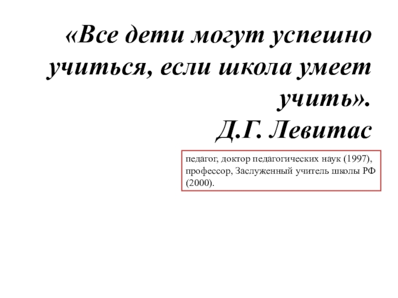 Слайд 2«Все дети могут успешно учиться, если школа умеет учить».