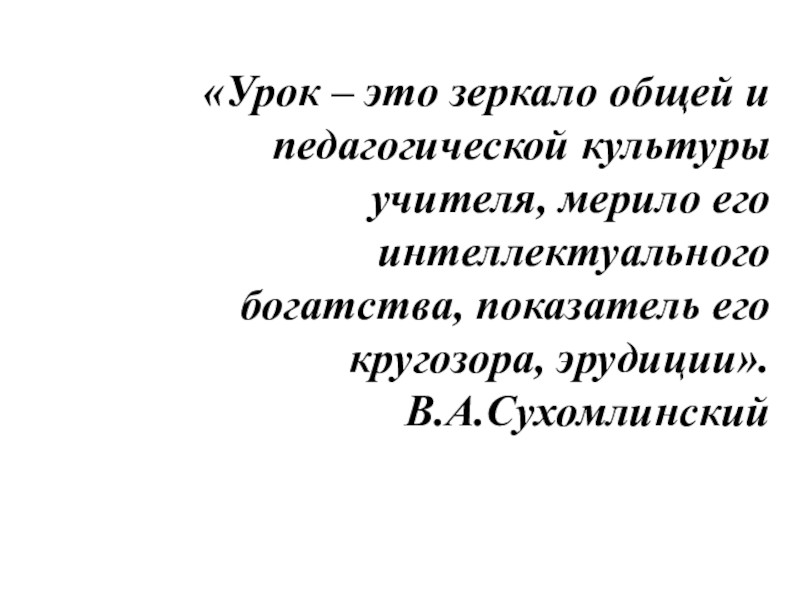 Слайд 3«Урок – это зеркало общей и педагогической культуры учителя, мерило его