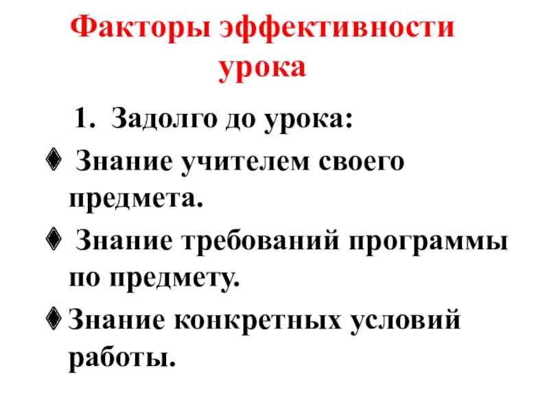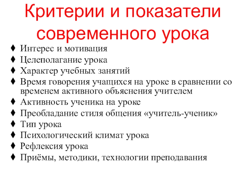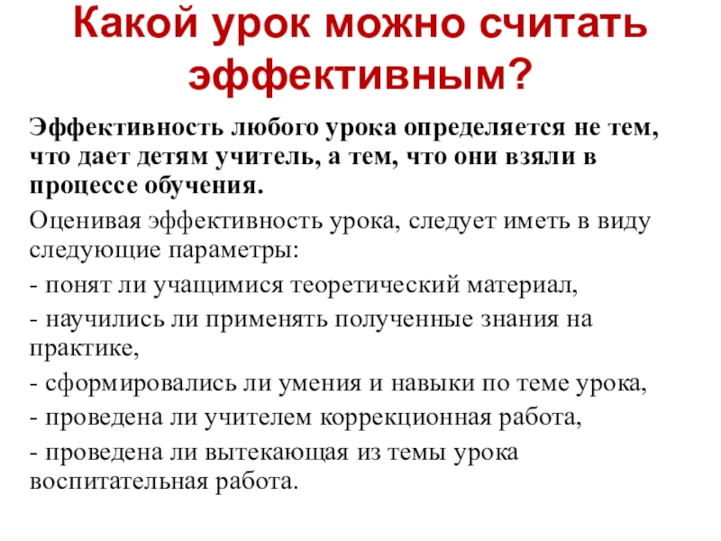 Оценивая эффективность урока, следует иметь в виду следующие параметры: