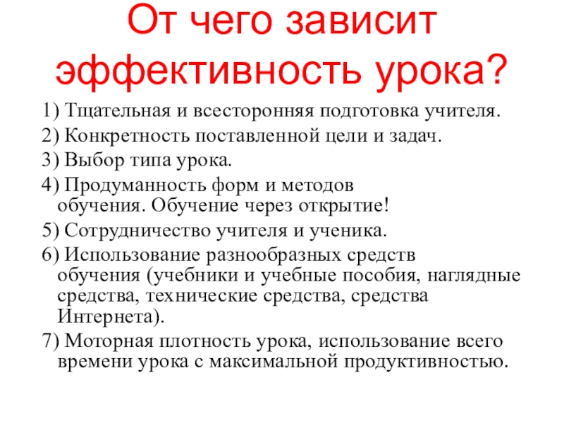 1) Максимальное сокращение организационного момента. У хорошего учителя