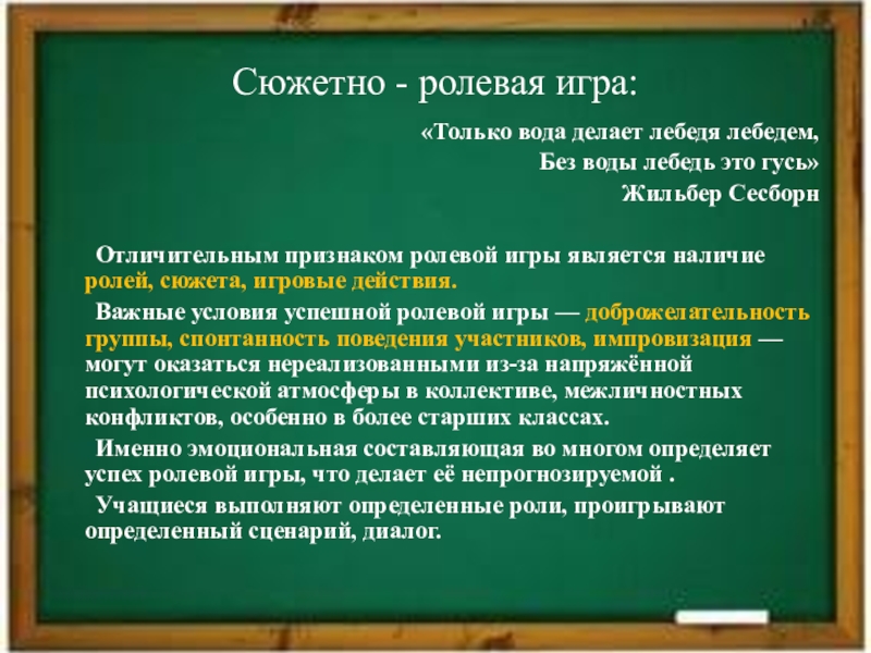 Именно эмоциональная составляющая во многом определяет успех ролевой игры, что делает её непрогнозируемой .