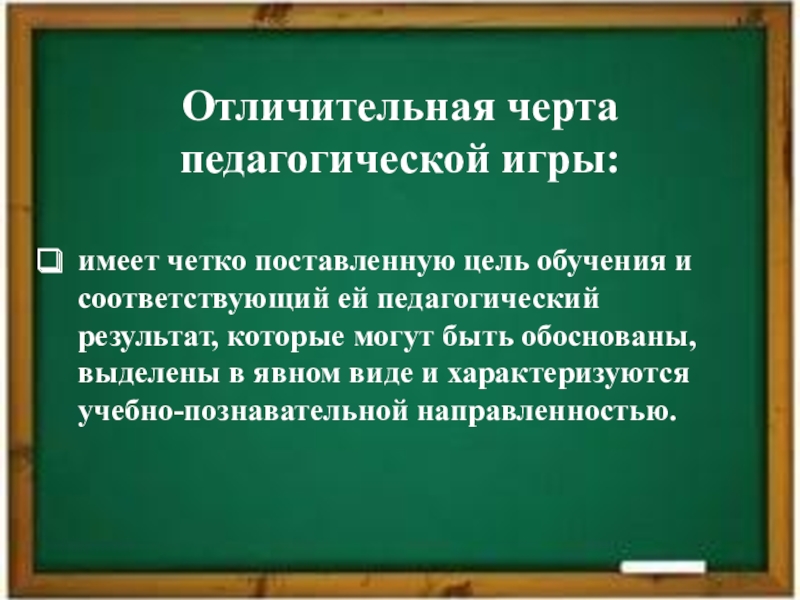 Слайд 7Отличительная черта педагогической игры: