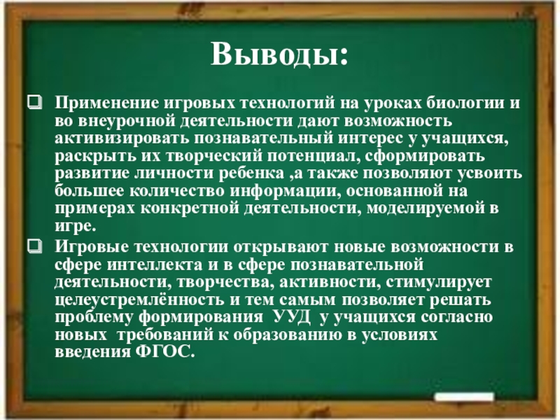 Применение игровых технологий на уроках биологии и во внеурочной деятельности дают
