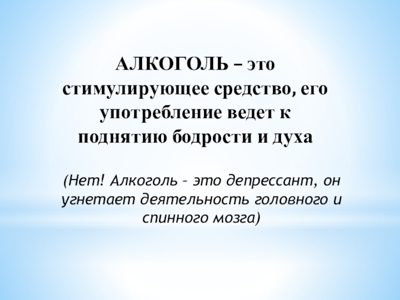 (Нет! Алкоголь – это депрессант, он угнетает деятельность головного и спинного мозга)