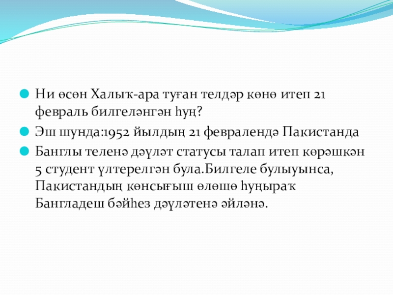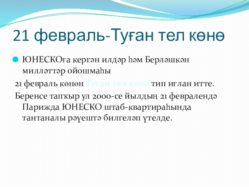 Слайд 221 февраль –халыҡ-ара туған телдәр көнө