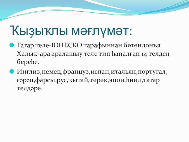 Татар теле-ЮНЕСКО тарафыннан бөтөндонъя Халыҡ-ара аралашыу теле тип һаналған 14