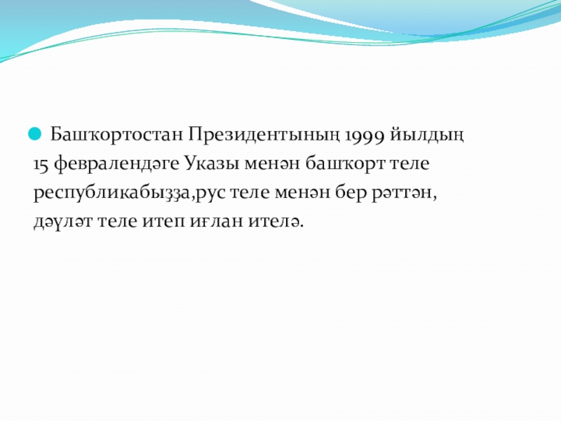 Слайд 5Башҡортостан Президентының 1999 йылдың