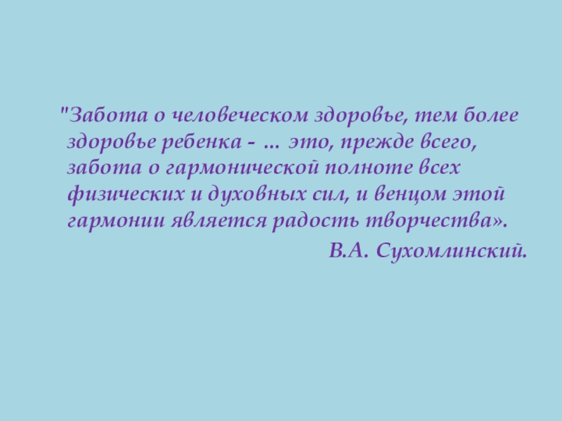 Слайд 2 "Забота о человеческом здоровье, тем более здоровье ребенка -
