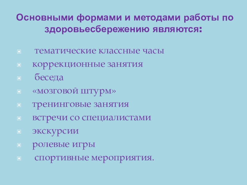 Слайд 4Основными формами и методами работы по здоровьесбережению являются: