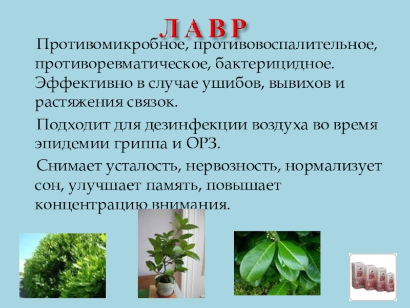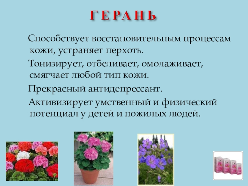 Восстанавливает душевное равновесие, стимулирует умственную деятельность.