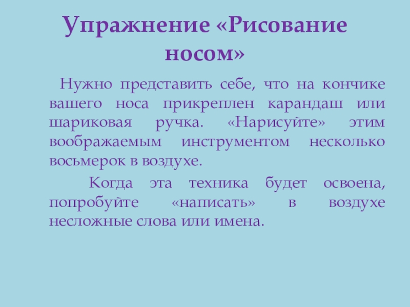 Когда эта техника будет освоена, попробуйте «написать» в воздухе несложные слова или имена.