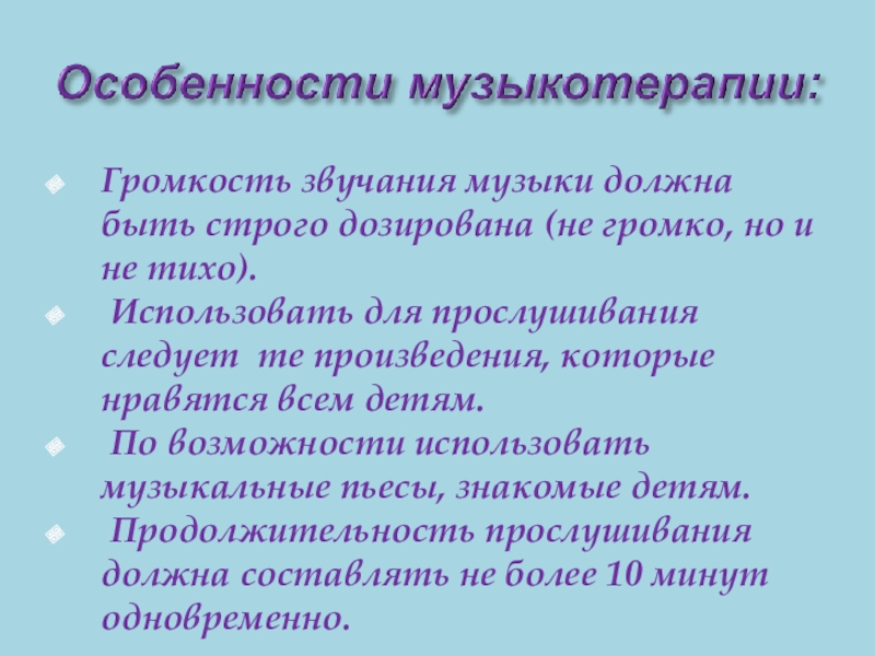 Слайд 69Громкость звучания музыки должна быть строго дозирована (не громко, но и
