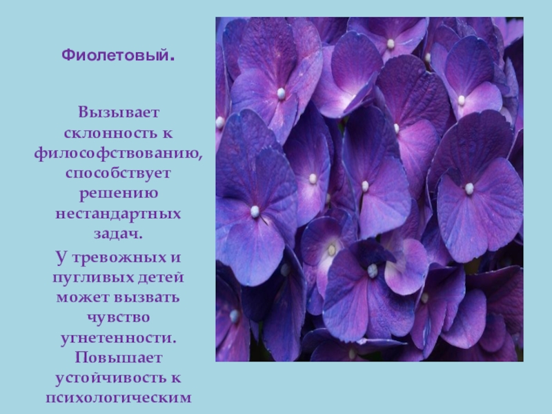 Тоже «холодный» цвет. У спокойных детей вызывает некоторое замедление обменных