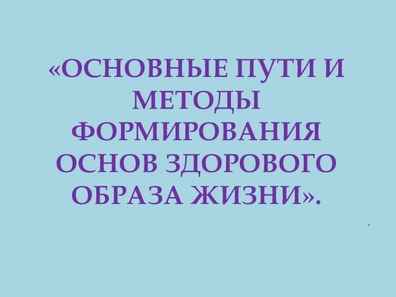 «Основные ПУТИ И методы формирования основ здорового образа жизни».