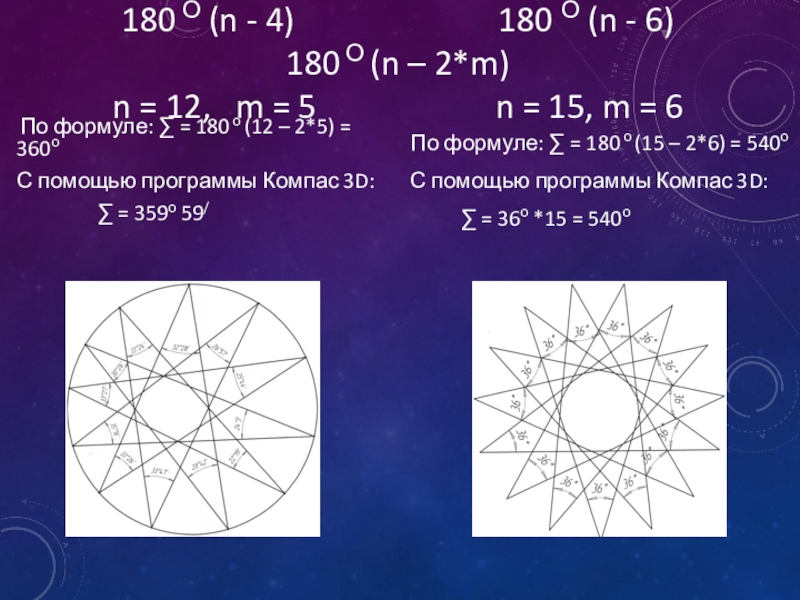 3. Использование программы Компас 3D-LT V12 для построения звездчатых многоугольников и нахождения суммы углов;