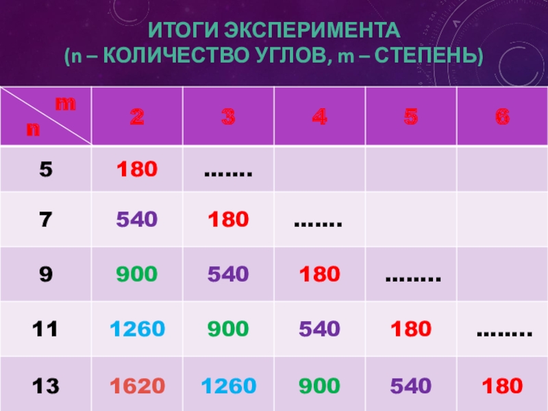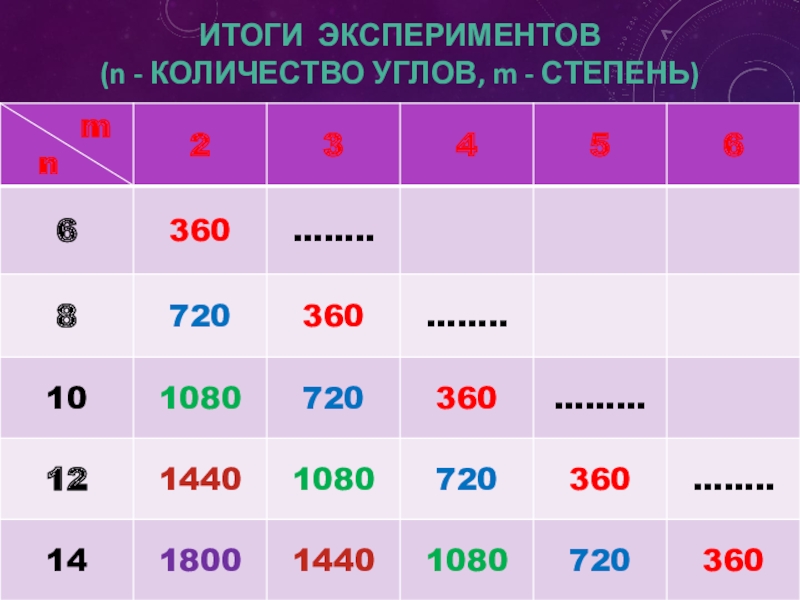 360о n - 180 (n -2) – 1440 о = 180 о (n – 6)