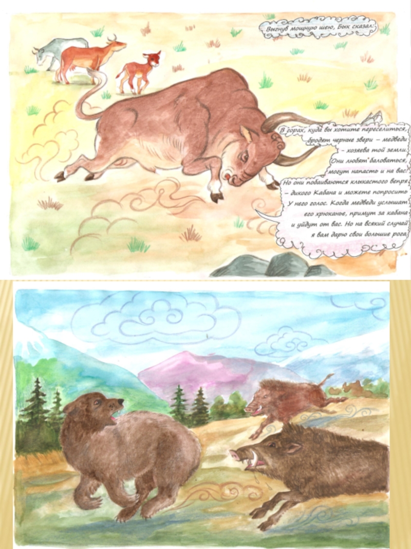 Очень ярко и образно были нарисованы рисунки к бурятским сказкам и легендам.