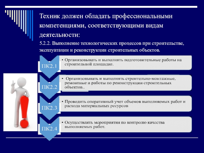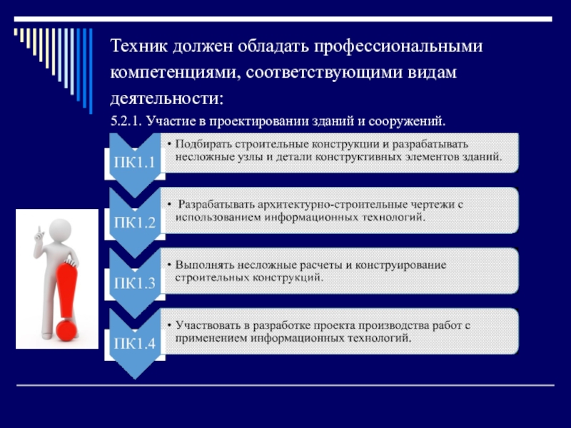 Под профессиональной компетентностью техника строителя следует понимать профессиональные и