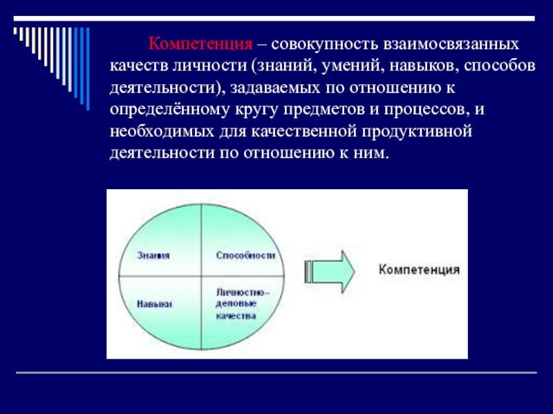 Слайд 7Компетенция – совокупность взаимосвязанных качеств личности (знаний, умений, навыков, способов деятельности),