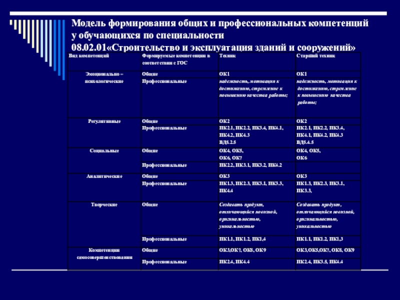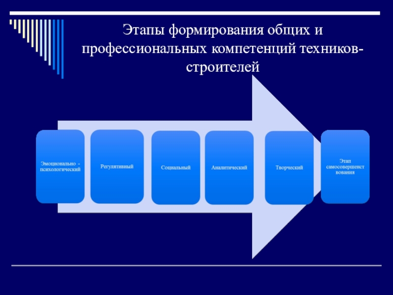 Слайд 15Этапы формирования общих и профессиональных компетенций техников-строителей