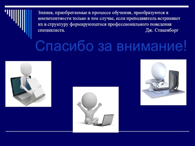 в том случае, если преподаватель встраивает их в структуру формирующегося профессионального поведения специалиста. Дж. Стакенборг