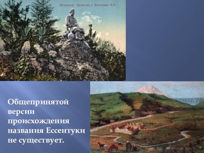 Слайд 12Общепринятой версии происхождения названия Ессентуки не существует.