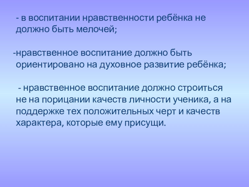 Слайд 3- в воспитании нравственности ребёнка не должно быть мелочей;