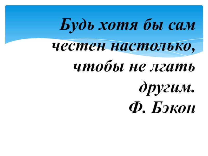 Слайд 3Будь хотя бы сам честен настолько, чтобы не лгать другим. Ф. Бэкон
