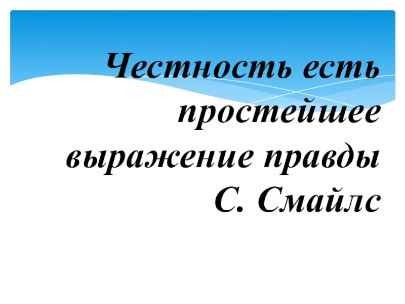 Слайд 2Честность есть простейшее выражение правды С. Смайлс