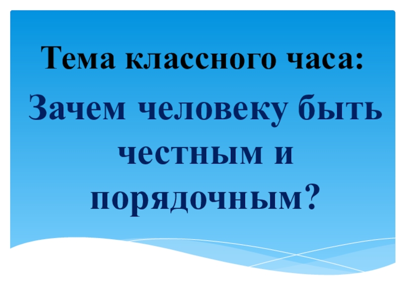 Тема классного часа:Зачем человеку быть честным и порядочным?