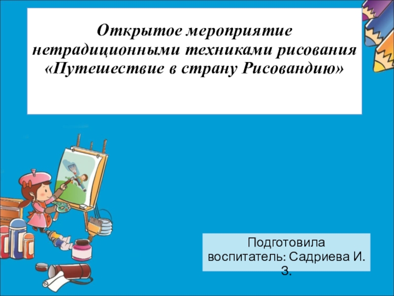 Слайд 1 Открытое мероприятие нетрадиционными техниками рисования «Путешествие в страну Рисовандию»