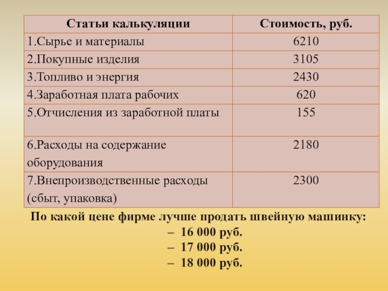 Слайд 12По какой цене фирме лучше продать швейную машинку:
