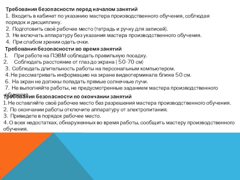 Требования безопасности во время занятий