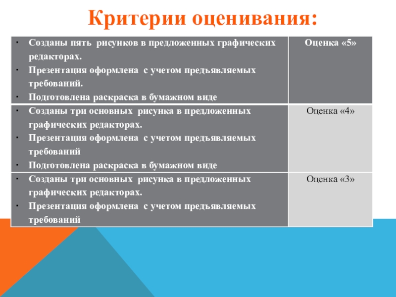 Критерии оценивания: