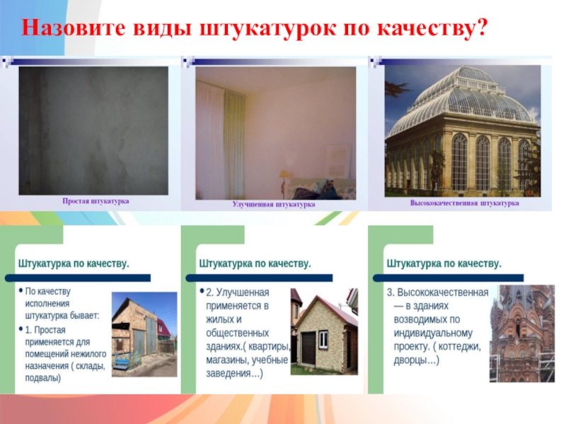 Слайд 9Какие виды декоративных штукатурок вам известны?