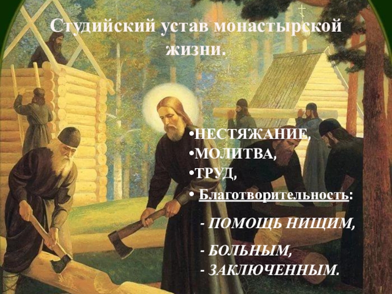 Слайд 18Студийский устав монастырской жизни.