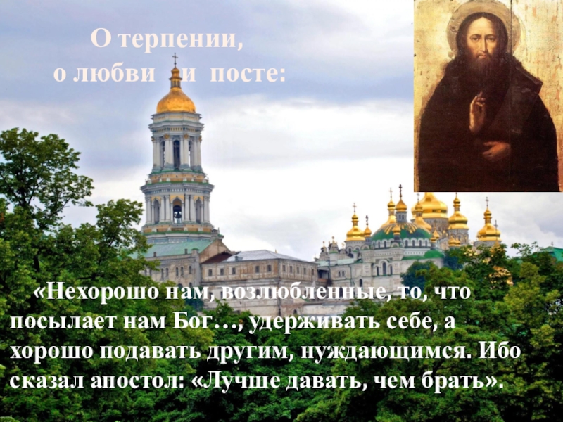 возлюбленные, то, что посылает нам Бог…, удерживать себе, а хорошо подавать другим, нуждающимся. Ибо сказал апостол: «Лучше давать, чем брать».
