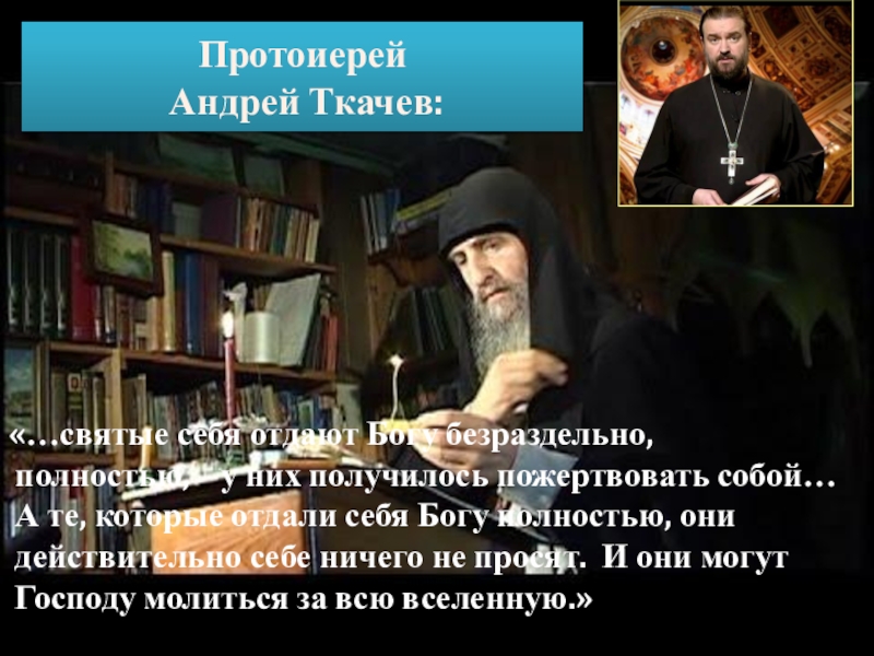 них получилось пожертвовать собой… А те, которые отдали себя Богу полностью, они действительно себе ничего не просят. И они могут Господу молиться за всю вселенную.»