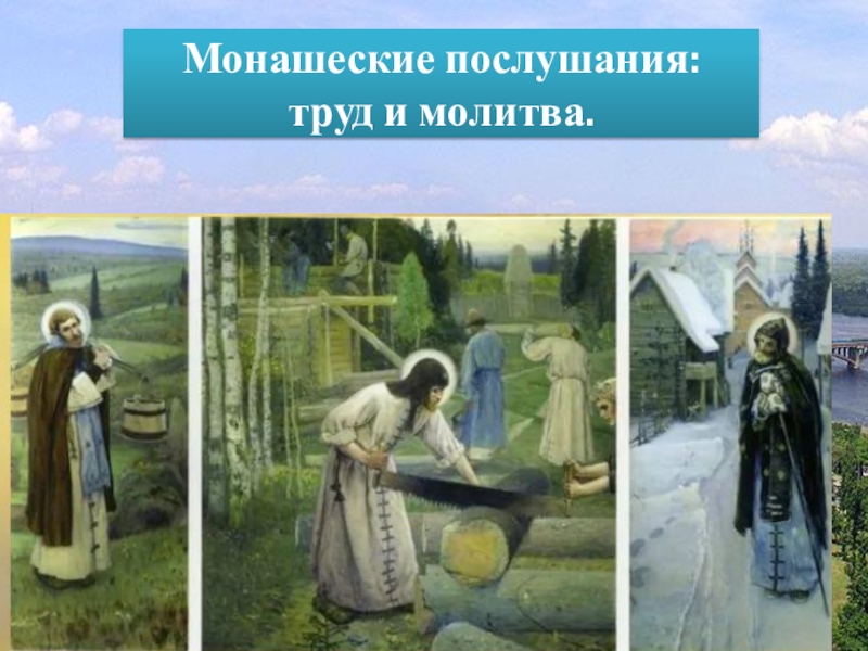 Слайд 13Монашеские послушания: