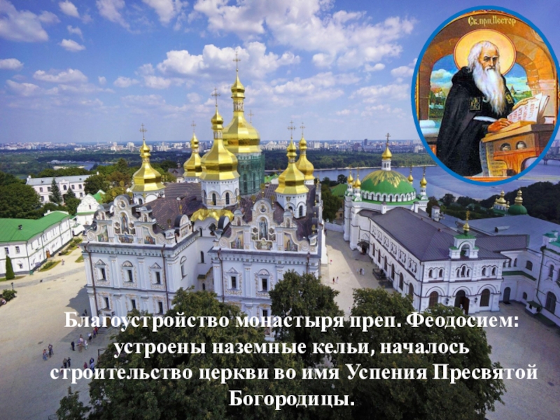 Слайд 17Благоустройство монастыря преп. Феодосием: