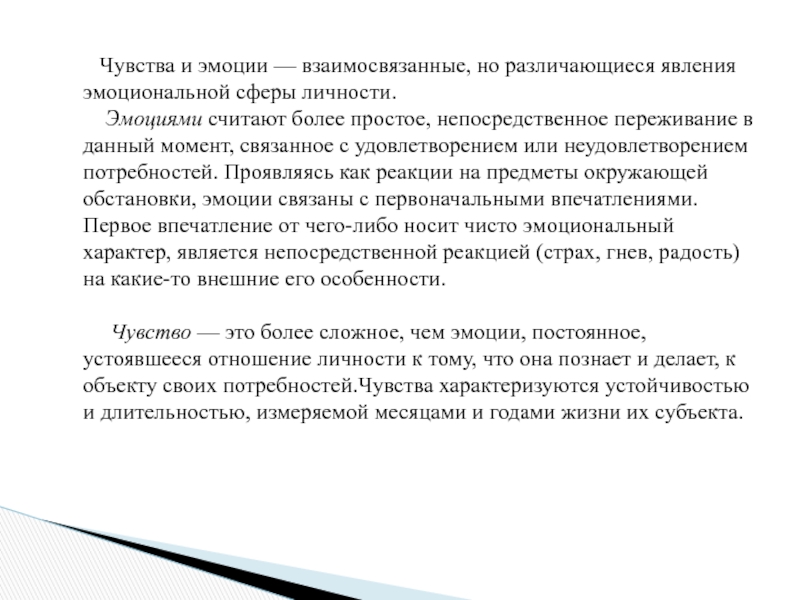 Слайд 3 Чувства и эмоции — взаимосвязанные, но различающиеся явления эмоциональной